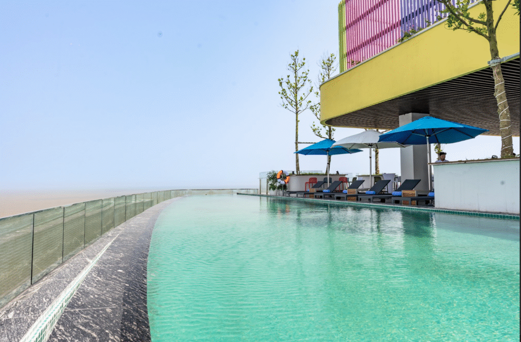 🍹 Bể bơi & Pool Bar – Vừa ngâm mình trong làn nước mát, vừa cầm ly cocktail trên tay, bạn sẽ có những bức ảnh “chanh sả” chẳng khác gì ở resort quốc tế.