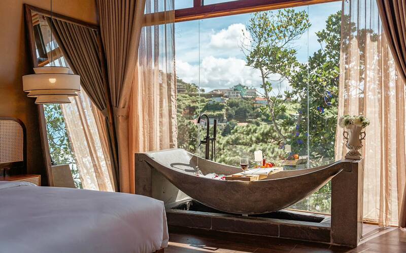 Phòng Deluxe 3 De Ma’at Hotel Đà Lạt là lựa chọn lý tưởng cho những ai yêu thích vẻ đẹp nguyên sơ, yên tĩnh của thiên nhiên và muốn đón trọn khoảnh khắc trong lành giữa rừng thông bạt ngàn. Với tầm nhìn hướng đồi thông cực đẹp, đây là hạng phòng được rất nhiều du khách săn đón, đặc biệt vào dịp cuối tuần khi nhu cầu nghỉ dưỡng tăng cao.