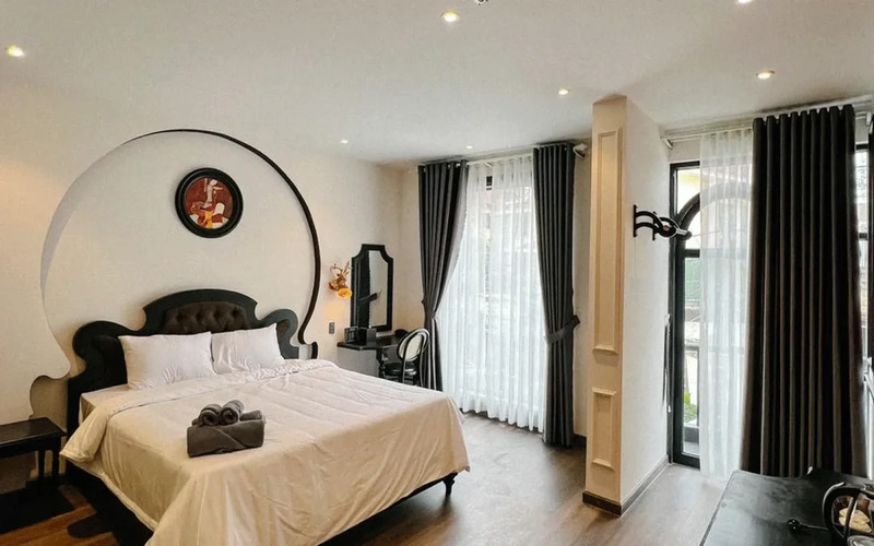 Phòng Deluxe 2 De Ma’at Hotel Đà Lạt gây ấn tượng ngay từ cái nhìn đầu tiên nhờ không gian rộng rãi, thoáng đãng và đặc biệt là thiết kế ban công mở ra toàn cảnh thành phố mộng mơ. Đây là lựa chọn hoàn hảo dành cho những du khách yêu thích sự thoải mái, riêng tư nhưng vẫn muốn gần gũi với thiên nhiên và ánh sáng tự nhiên của Đà Lạt.