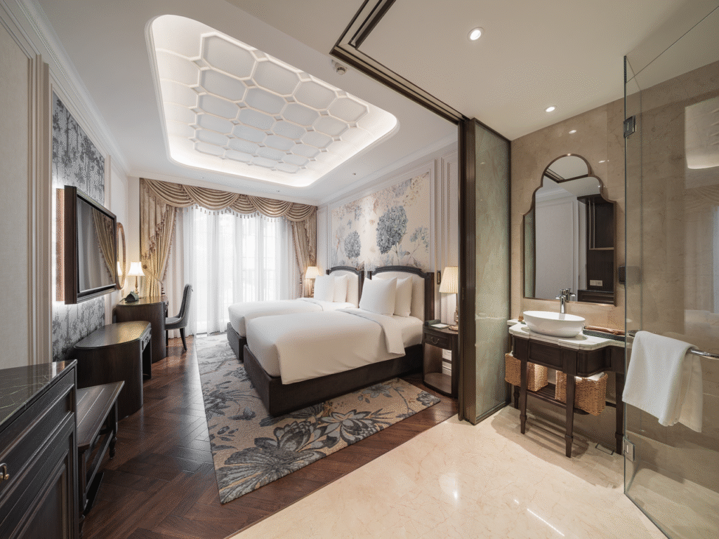 Phòng Deluxe Twin Golden Imperial Đà Lạt là lựa chọn lý tưởng cho nhóm bạn hoặc gia đình nhỏ muốn tận hưởng kỳ nghỉ thoải mái ngay trung tâm thành phố sương mù. Với thiết kế trang nhã, hiện đại và hai giường đơn rộng rãi, căn phòng mang lại sự tiện lợi và riêng tư, giúp mỗi vị khách đều có không gian nghỉ ngơi riêng biệt nhưng vẫn ấm áp, gần gũi.