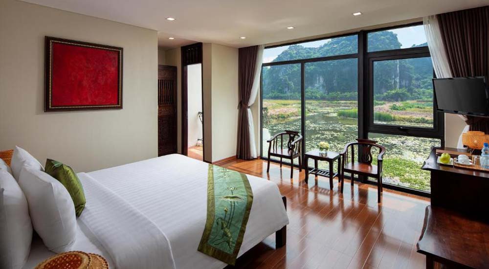 Phòng Deluxe Lake View Tam Coc là điểm dừng chân hoàn hảo dành cho những ai đang tìm kiếm một trải nghiệm nghỉ dưỡng nhẹ nhàng, yên tĩnh giữa thiên nhiên non nước hữu tình của Ninh Bình. Tọa lạc trong khuôn viên khu nghỉ dưỡng Tam Coc La Montagne Resort & Spa, hạng phòng này nổi bật với tầm nhìn trực diện ra mặt hồ thơ mộng – nơi ánh nắng nhẹ nhàng buông xuống mặt nước, tạo nên một khung cảnh bình yên hiếm có.