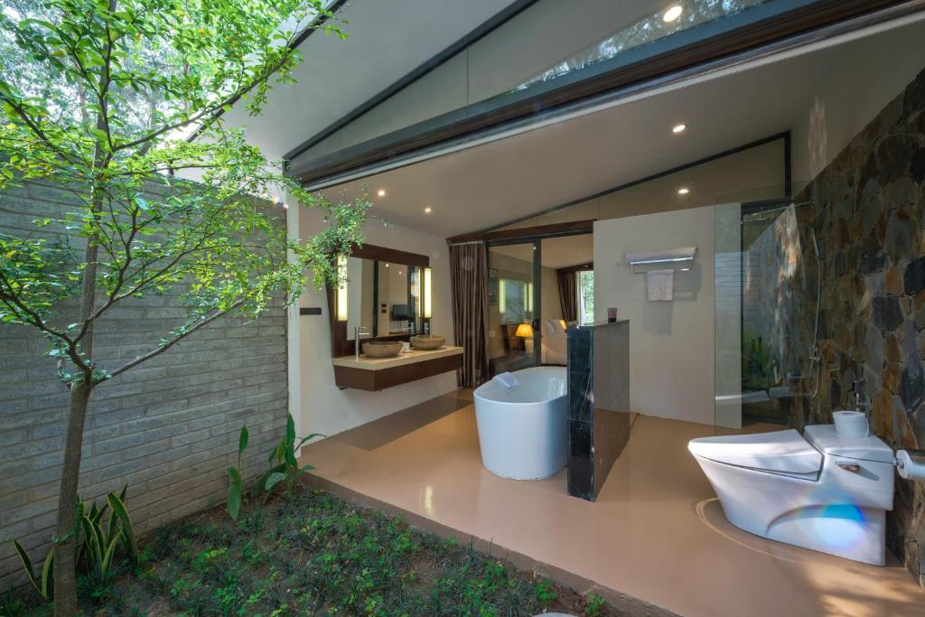 | Tiện nghi nổi bật | Ban công view rừng, bồn tắm, hiên nghỉ | Sân vườn riêng, gần khu spa | Ban công lớn, bồn tắm view hồ |