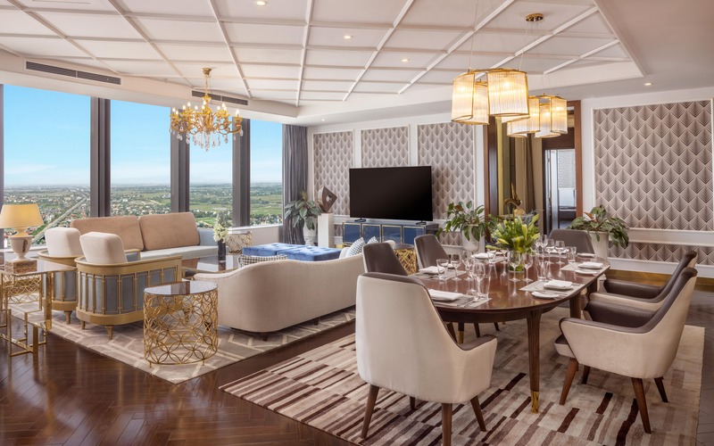 Presidential Suite Vinpearl Hà Tĩnh là hạng phòng danh giá nhất tại khách sạn, đại diện cho đỉnh cao của sự sang trọng, đẳng cấp và riêng tư tuyệt đối. Với không gian rộng lớn, thiết kế tinh xảo đến từng chi tiết và tầm nhìn panorama bao quát cả thành phố, đây chính là lựa chọn hoàn hảo cho những vị khách VIP, lãnh đạo cấp cao, doanh nhân thành đạt hoặc những ai mong muốn một kỳ nghỉ thật sự khác biệt và đẳng cấp.